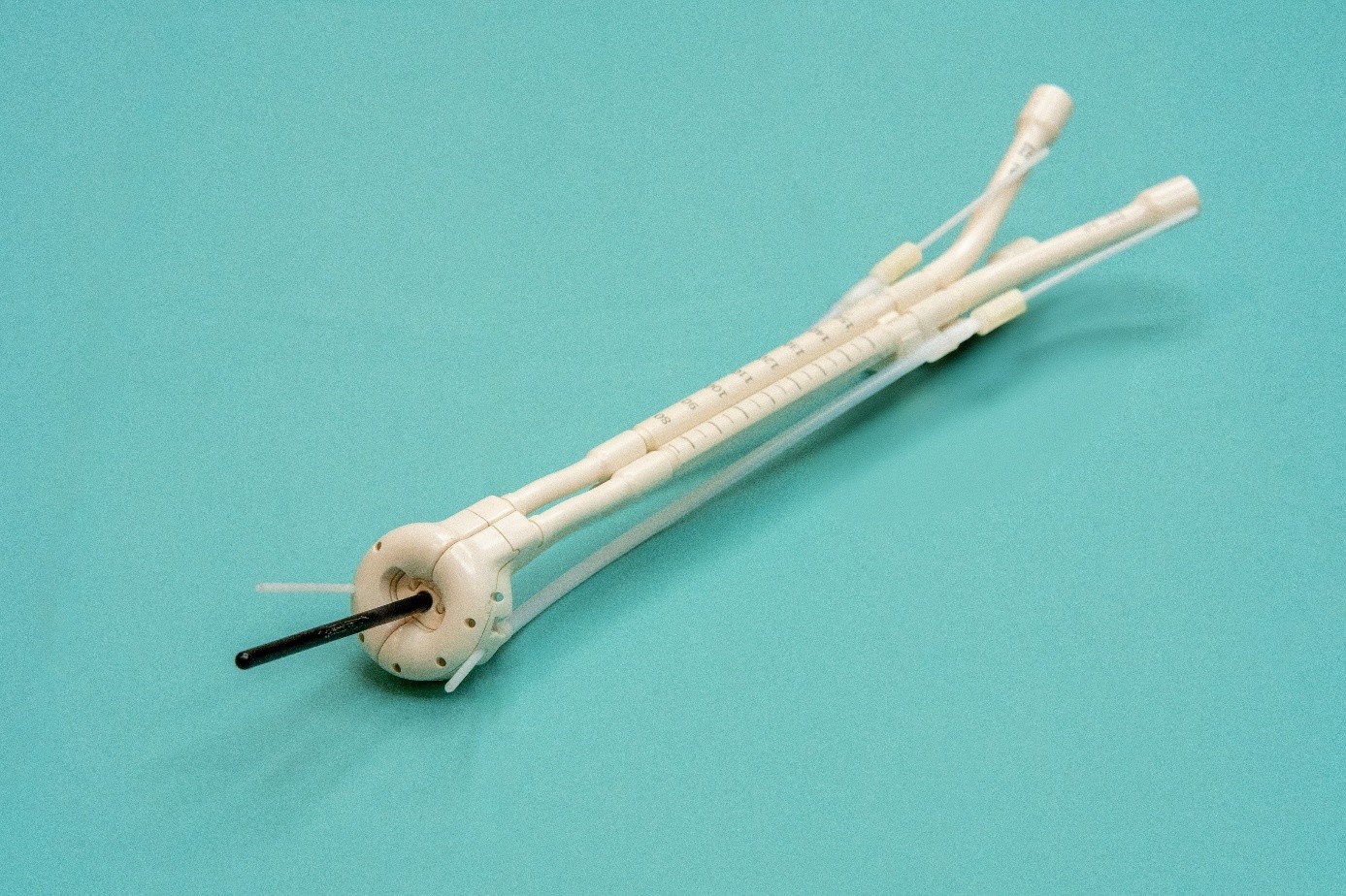 - Intersticiální - zdroj je prostřednictvím plastikových katetrů zaveden přímo do nádorového ložiska nebo do jeho lůžka. Aplikace je provedena v průběhu operačního výkonu zavedením katetrů do lůžka nádoru (lůžko tumoru po parciální resekci prsu či po resekci sarkomu).